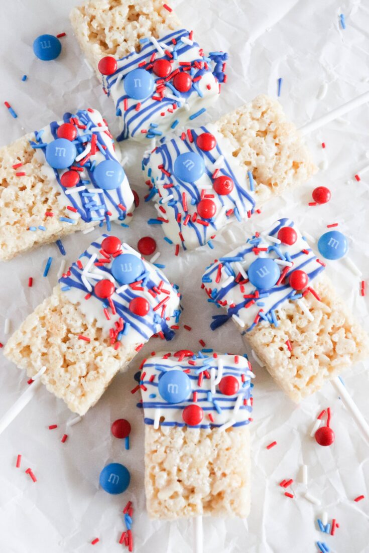 We’re featuring red, white, and blue fruit skewers, patriotic Rice Krispies treats, red, white, and blue milkshakes, fireworks cupcakes, and so much more! Serve these 4th of July snacks and drinks up at your Fourth of July barbecue or pack them in a lunchbox for a patriotic surprise.
