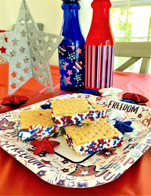 This frozen graham cracker treat with patriotic sprinkles will be a blast back to Mom and Dad's childhood!