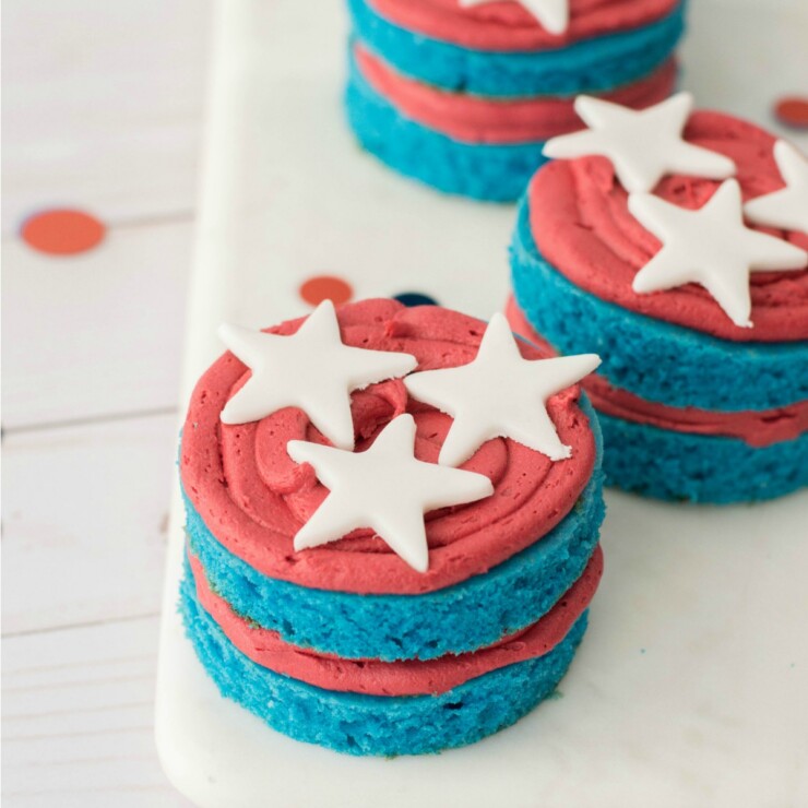 With a little food coloring, you can achieve these adorable 4th of July mini cakes!