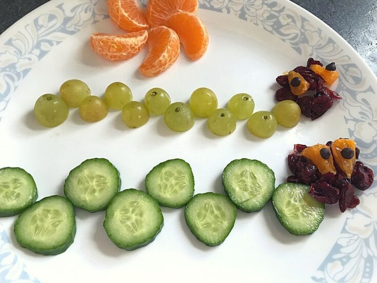 Use cucumbers and grapes for this cute Very Hungry Caterpillar vegetable snack idea!